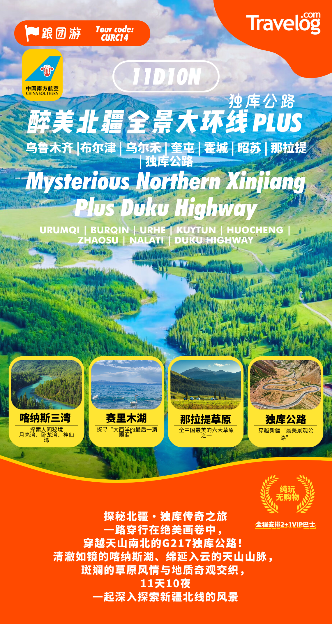 Home > Activities > [跟团游] 醉美北疆全景大环线PLUS独库公路 11D10N 全景纯玩团 (含机票) 乌鲁木齐|布尔津|贾登峪|奎屯|霍城|昭苏|那拉提|独库公路 (吉隆坡-中转-乌鲁木齐) Mysterious Northern Xinjiang Plus Duku Highway