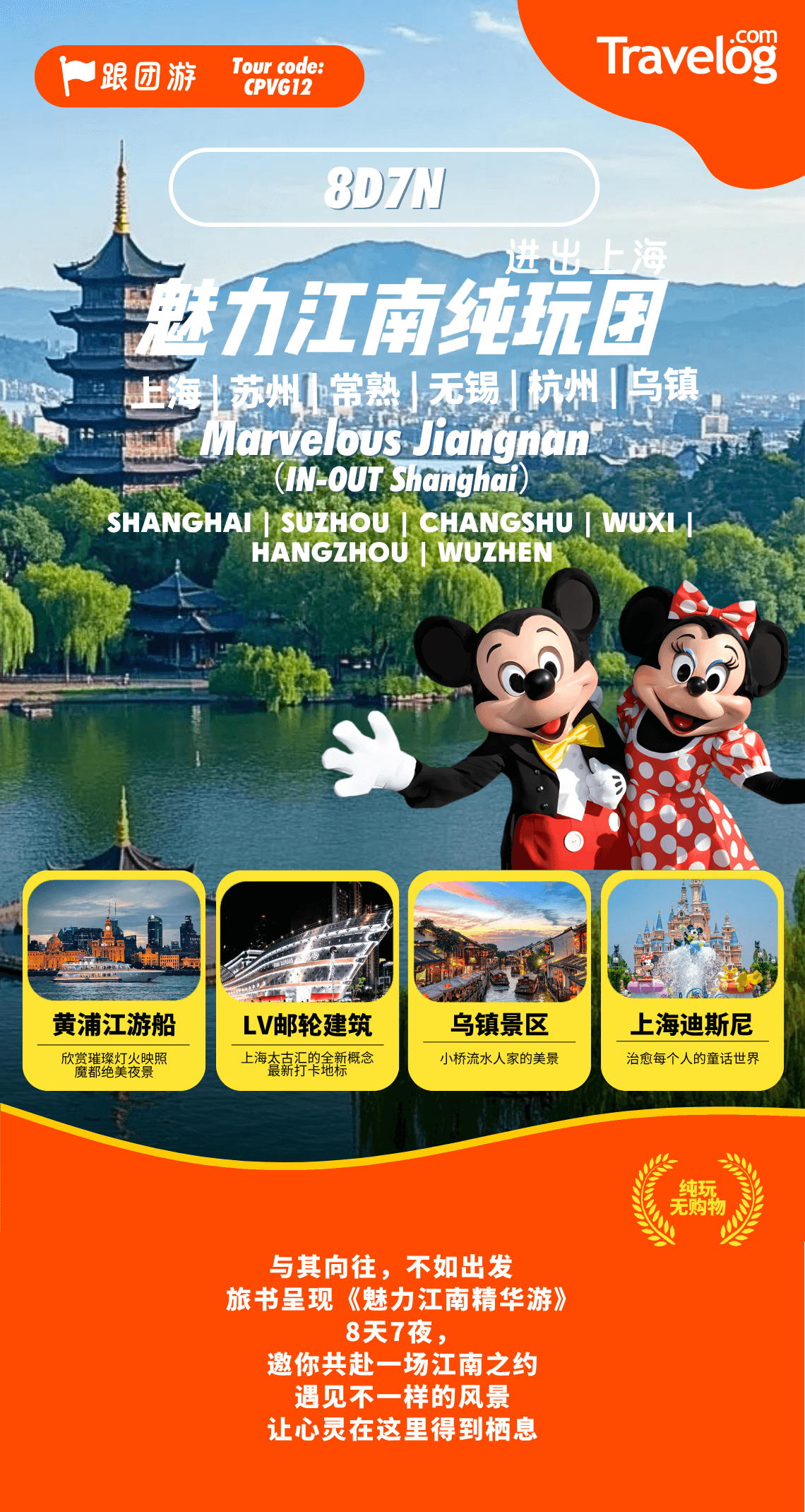 Home > Holiday Packages > [跟团游]8D7N魅力江南纯玩团(含机票) 上海|苏州|常熟|无锡|杭州|乌镇 (吉隆坡直飞上海) Marvelous Jiangnan (Depart from Shanghai)