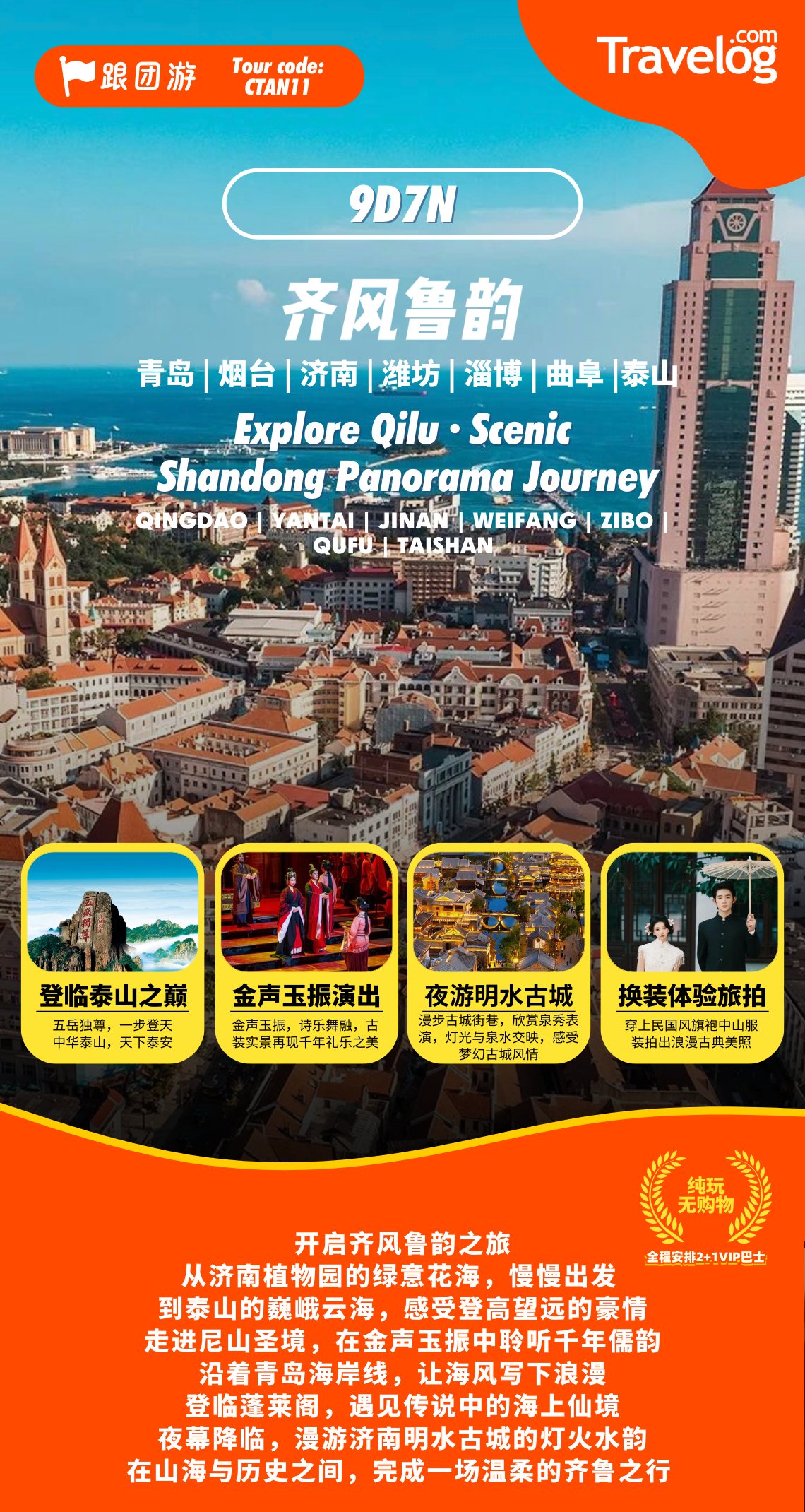 [跟团游] 齐风鲁韵 9D7N 全景纯玩团 (含机票) 青岛|烟台|济南|潍坊|淄博|曲阜|泰山| (吉隆坡直飞) Explore Qilu. Scenic Shandong Panorama Journey