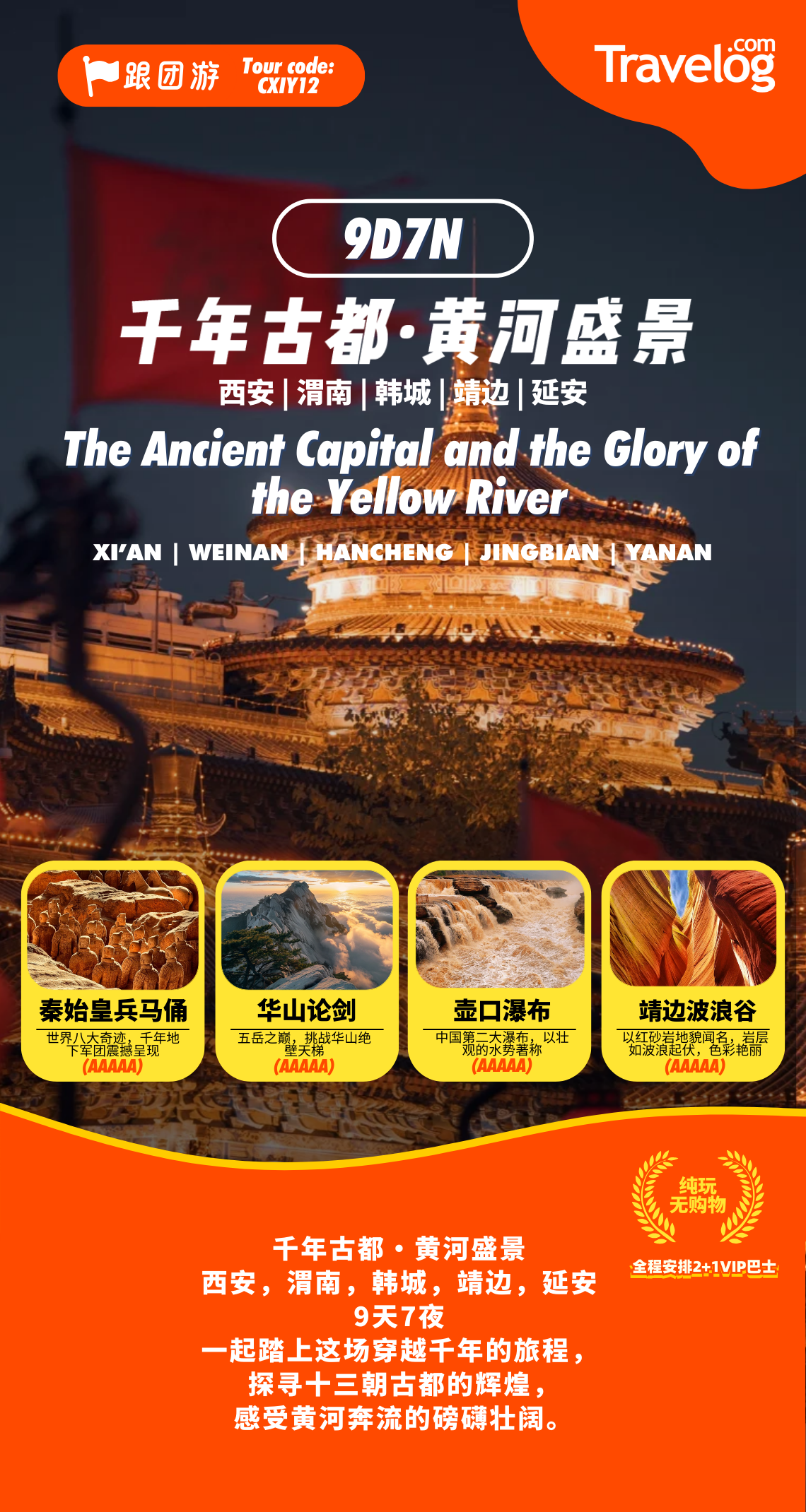 [跟团游] 千年古都·黄河盛景 9D7N全景纯玩团 (含机票) 西安|渭南|韩城|靖边|延安 (吉隆坡直飞) The Ancient Capital and the Glory of the Yellow River