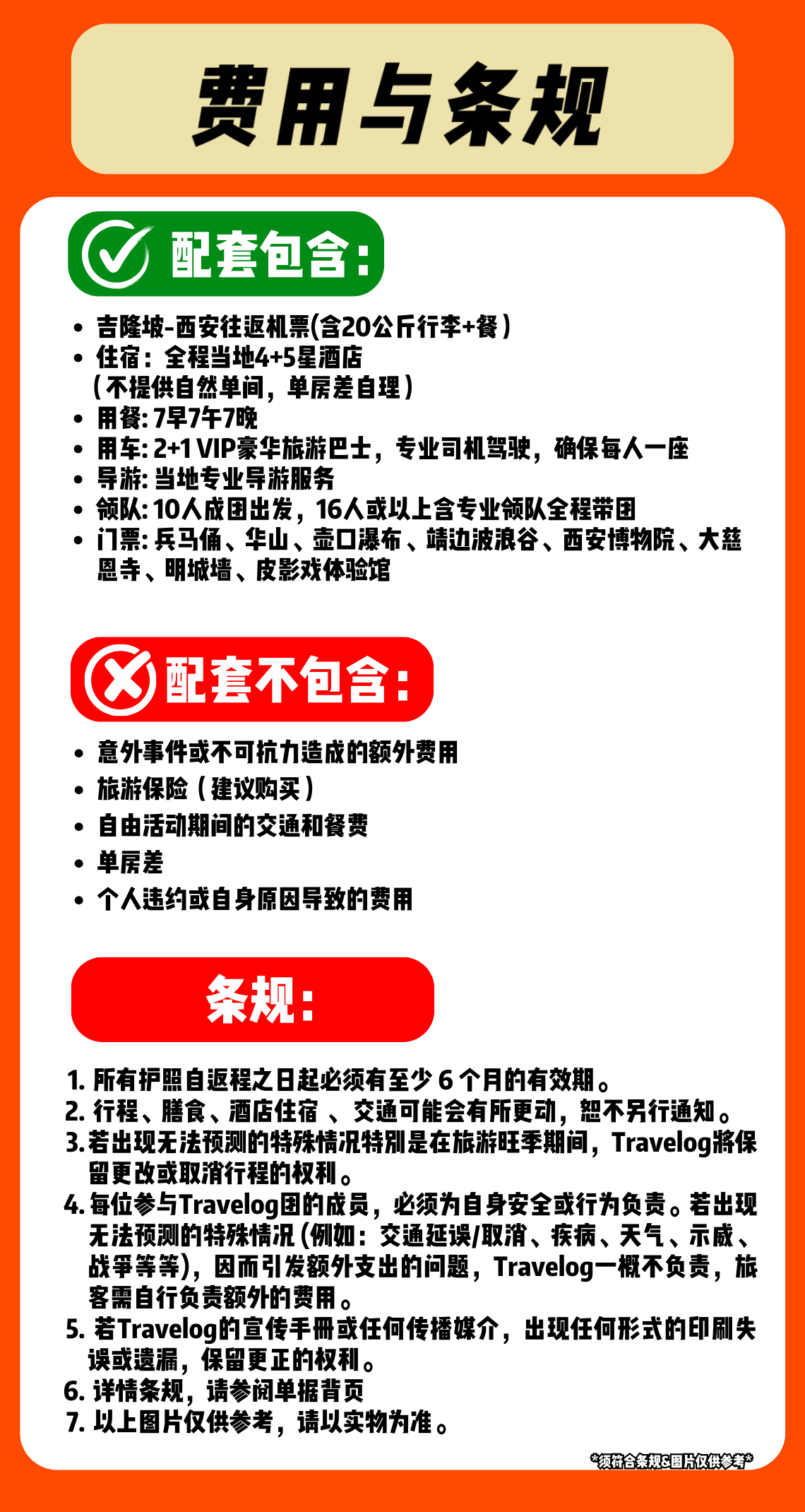 • 门票: 包含所列景点门票